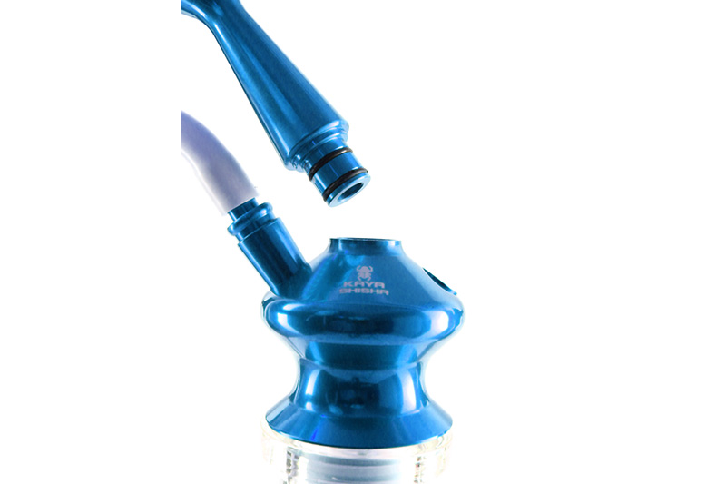 Eixo, chapa de cinzas e adaptador de mangueira em alumínio anodizado azul